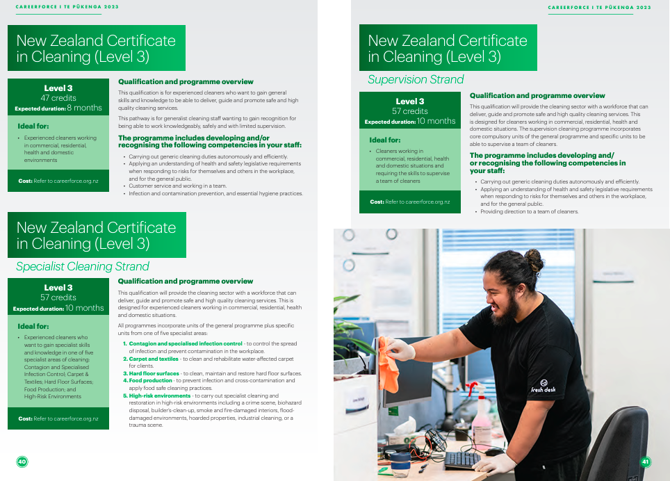There is a timeframe to complete modules, but you learn at your own pace, fit around your cleaning work